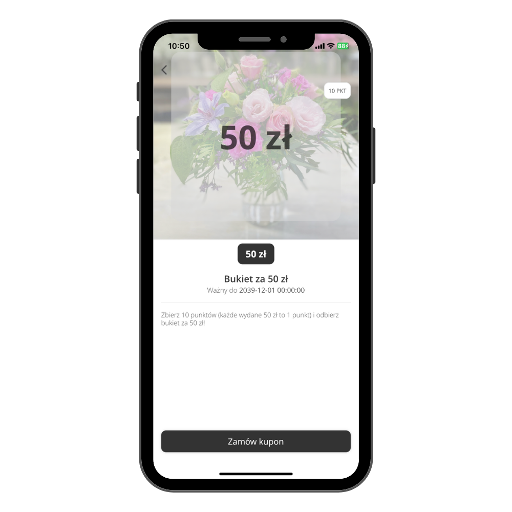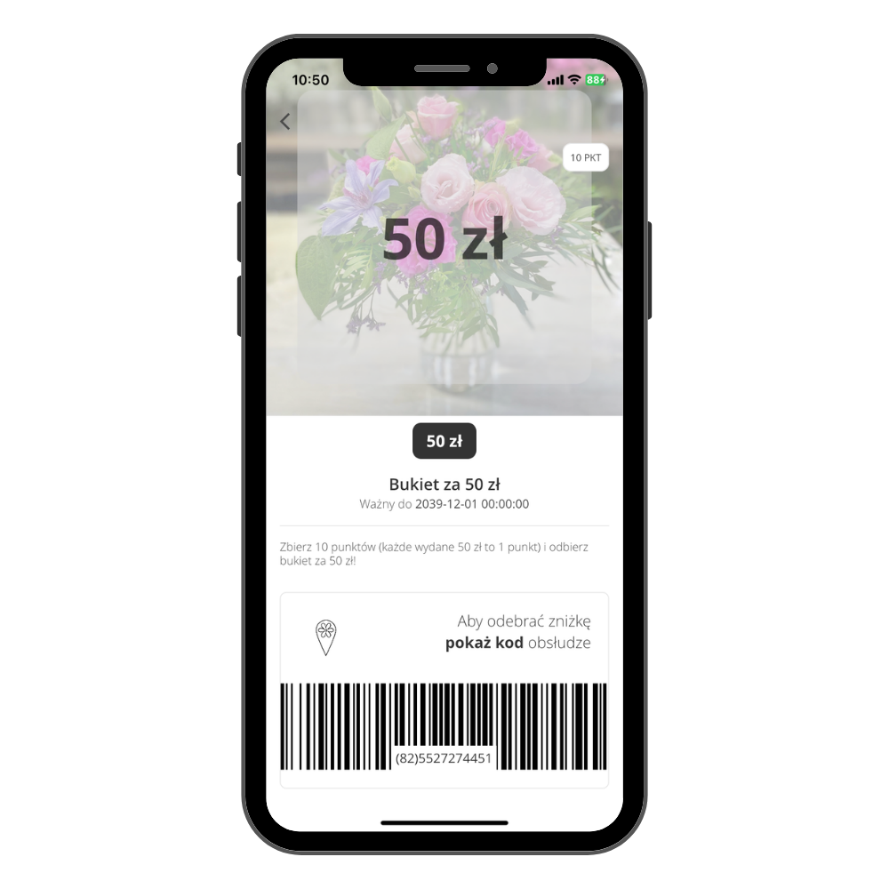 Za każde 50 zł wydane w naszych kwiaciarniach otrzymujesz punkty.
